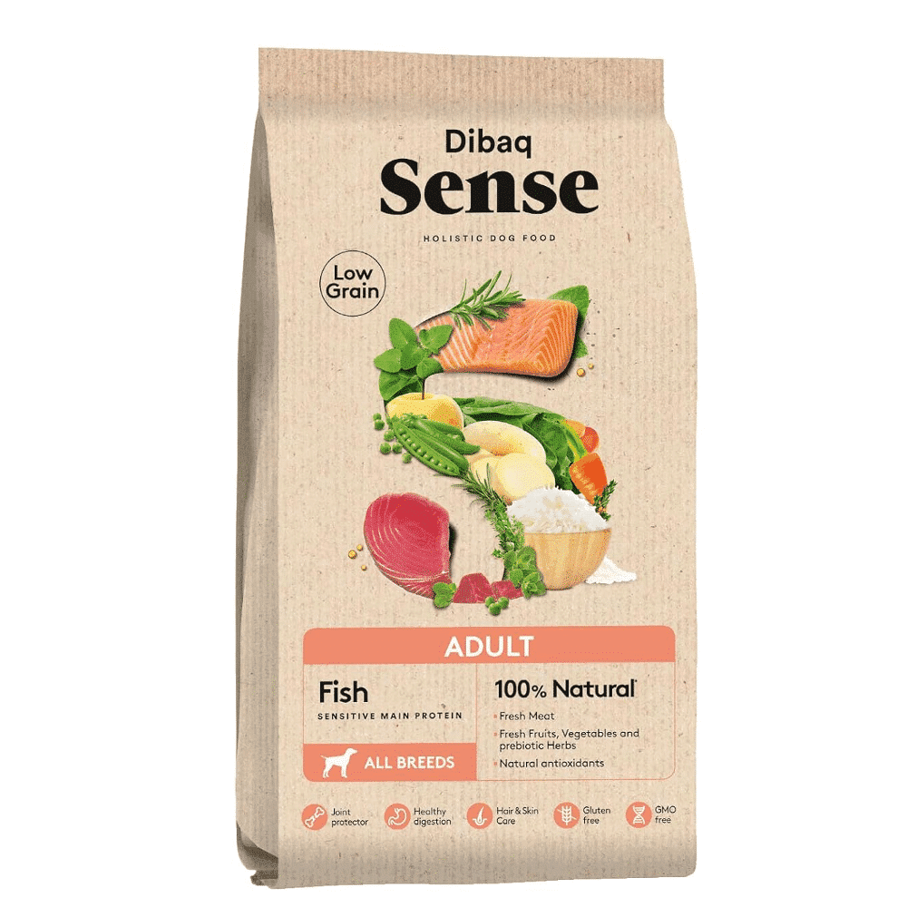 Dibaq Sense Fish is a hypoallergenic recipe for adult dogs of all races prepared with fresh meat of salmon, fruits and vegetables (cats, potatoes, spinach and apples) and rice.It is a recipe without wheat, gluten, corn, soy and eggs. Dibaq Sense it is an exclusive hypoallergenic range with 100% Natural ingredients.Recipes made with fresh meats (Salmon, sandwiches, chicken, pot, pavo …), fresh fruits and vegetables (patates, boniate, peppers, sandwiches, apples, mango …), joint protectors (condroitin and glucosamine), prebiotic plants and natural antioxidants.All ingredients are in origin suitable for human consumption and of top quality.