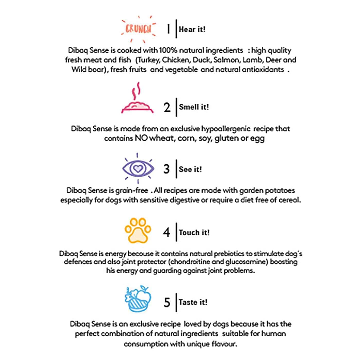 Dibaq Sense Chicken & Duck Grain Free Hypoallergenic Adult All Breeds Dog Food with 100% natural hypoallergenic dry food for dogs of all breeds. Made with fresh chicken and duck that promotes digestion, prevents obesity and reduces allergic reactions. Made with fresh chicken and duck.