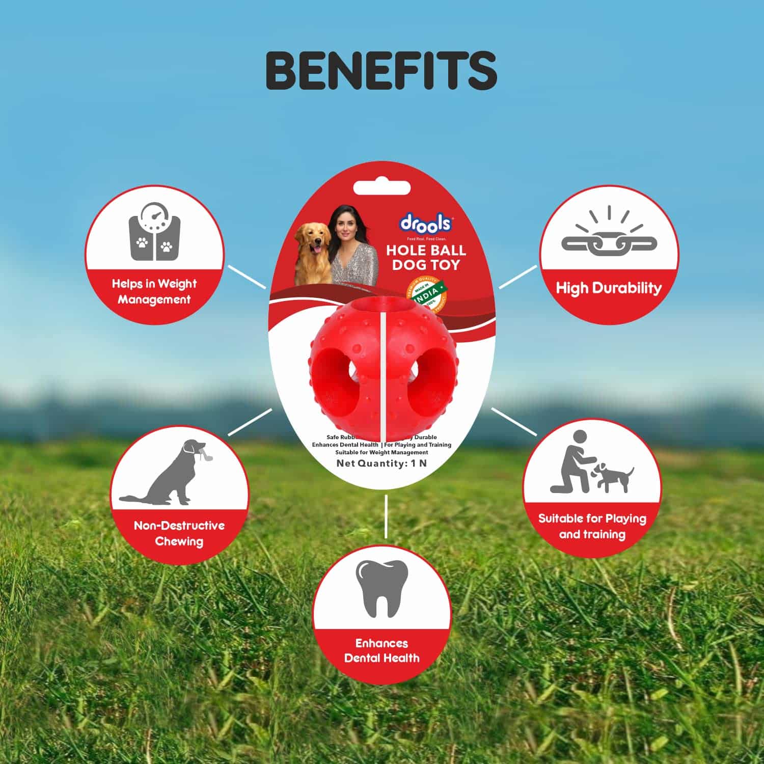 Drools Non-Toxic Rubber Hole Ball Chew Toy, Puppy/Dog Teething Toy – 3 inches