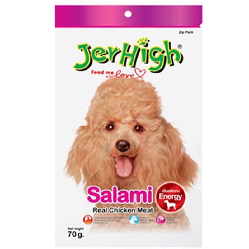 JerHigh Salami is made from real chicken meat and has been meticulously prepared by our highly experienced expert team. It has been researched and tested in the laboratory to ensure that the treat is hygienic, safe, and filled with all of the nutrients man’s best friend needs to stay healthy and happy. You can rest assured that JerHigh Salami is the perfect reward that your favorite canine deserves.