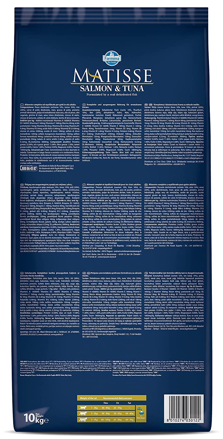 - The Matisse Premium Dry Cat Food is a complete food for cats and it features Salmon & Tuna as their main ingredients.