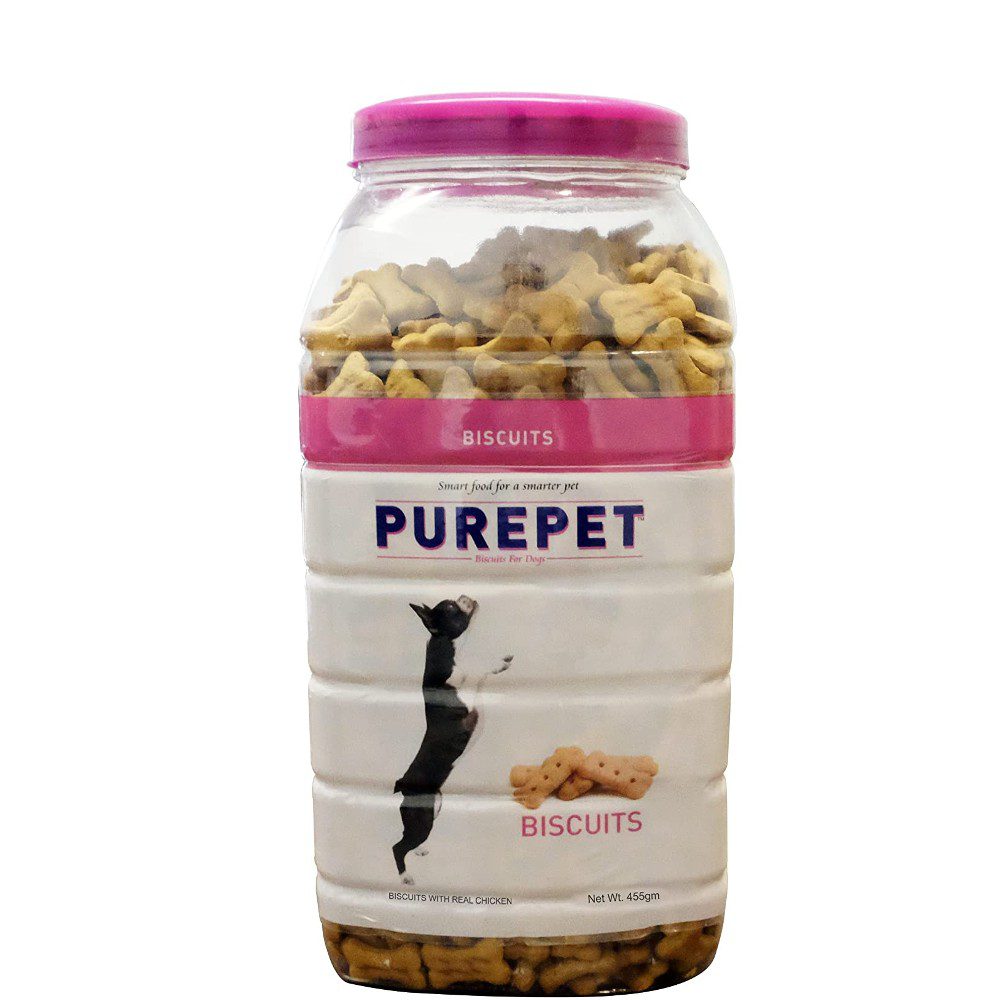 - Purepet dog biscuits are available in delightful flavors i. E. 100% Veg, chicken, mutton and milk.