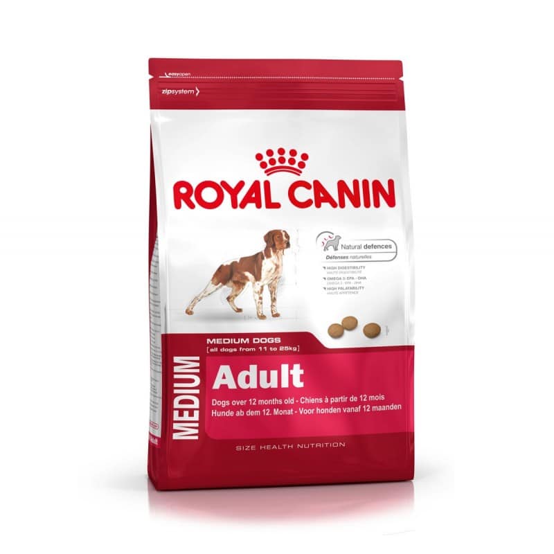 Satisfies the appetite of medium breed dogs thanks to carefully selected flavourings.