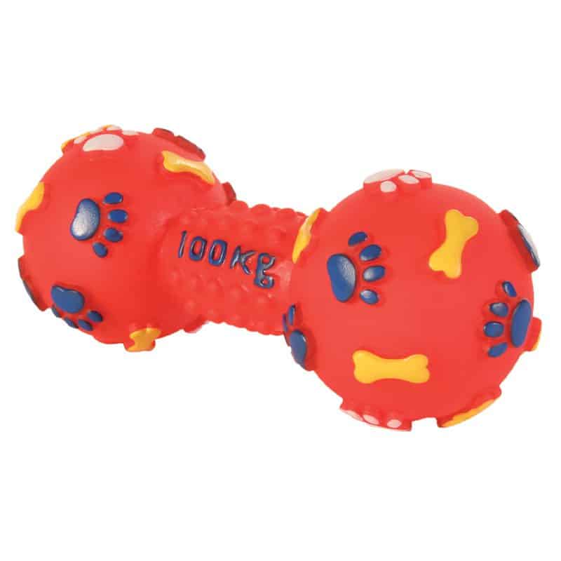 Trixie dumbbell squeaky toy is a great choice for your pet dog. Made from non-toxic vinyl rubber material, it causes no harm to your pet. Encourages exercise and play.