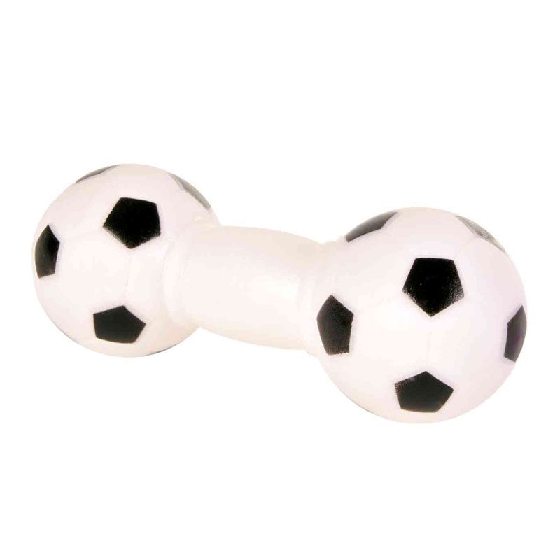 Trixie Soccer Dumbbell made from non-toxic vinyl rubber material, it is safe for your pets. It generates sound which attracts your pet.